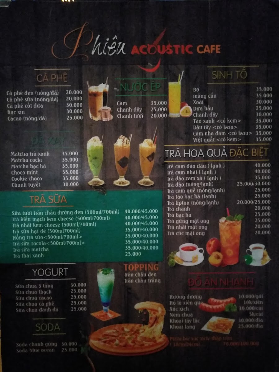 Welcome to Coffee Phiêu Acoustic, a cozy café nestled at 89 Nguyễn Văn Cừ, Ngọc Trạo, Bỉm Sơn, Thanh Hóa. Here, you can enjoy a delightful menu that perfectly complements its inviting ambiance.